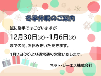12月30日(火)~1月6日(火)までの間、お休みさせていただきます。
